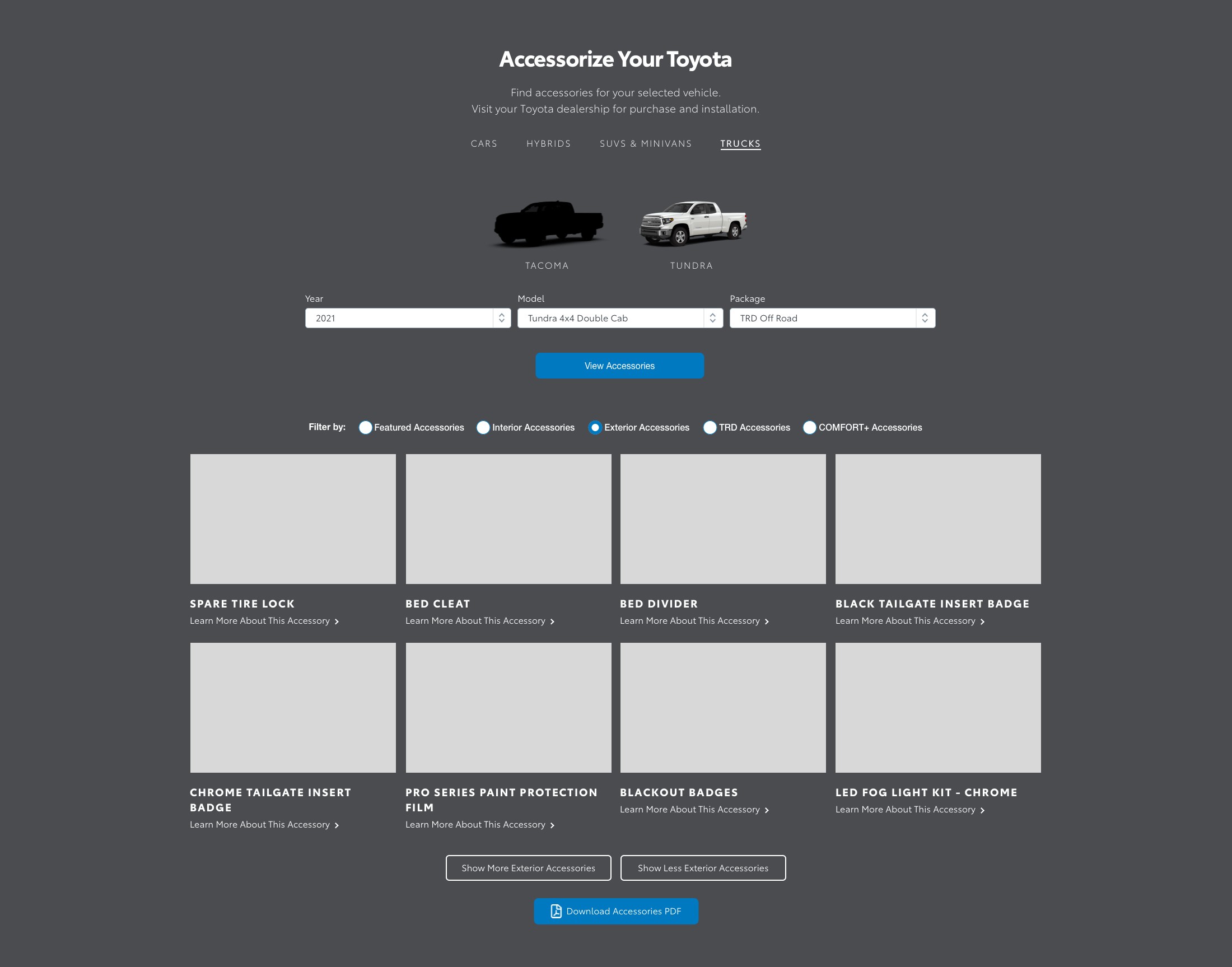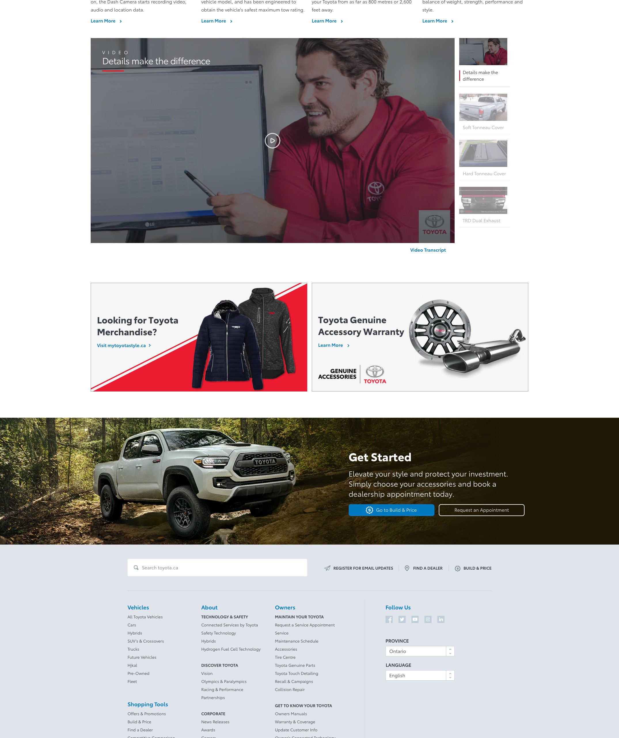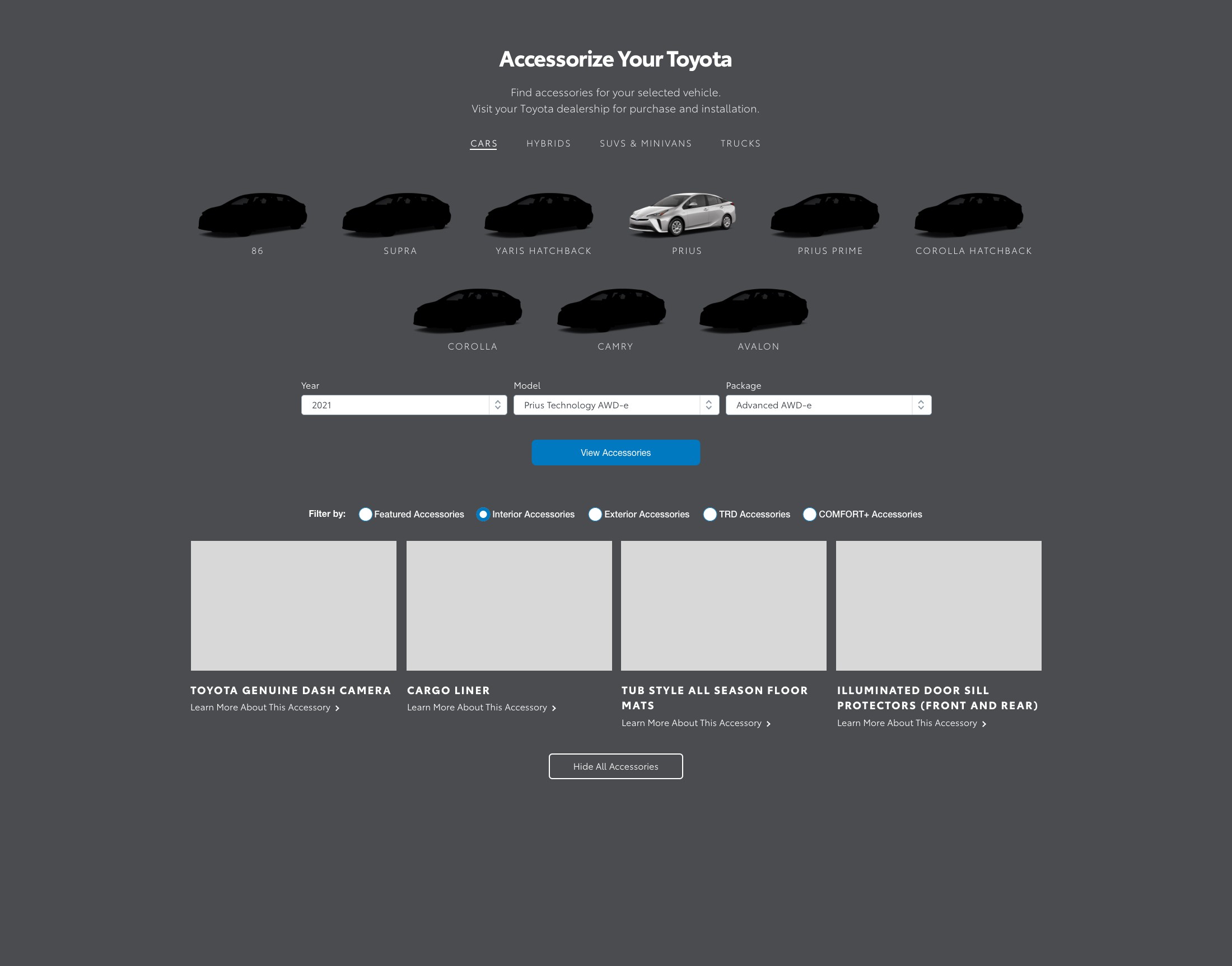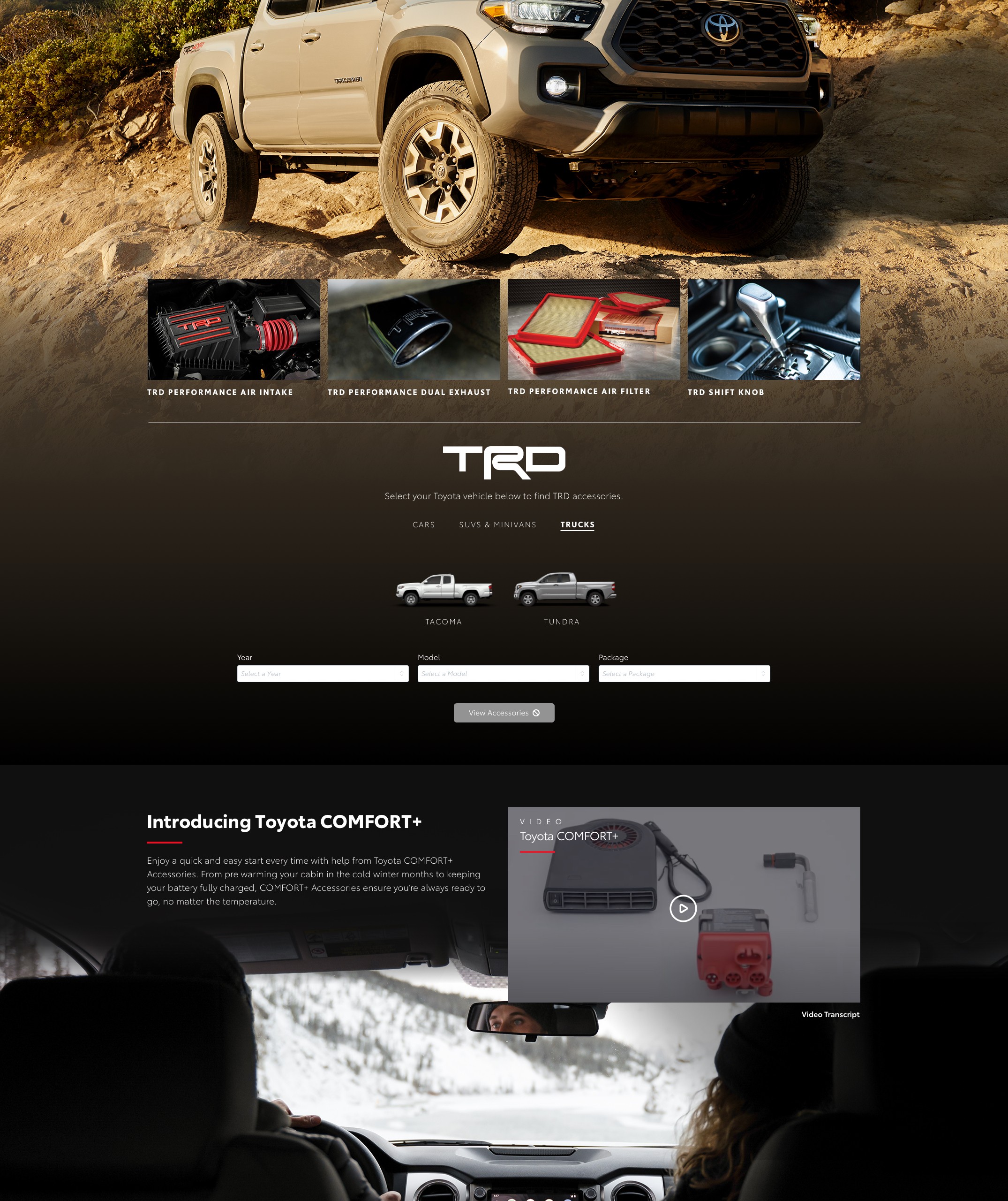 Toyota aimed to reimagine its Accessories page by transforming it into a dynamic, search-forward experience. The existing experience was static and outdated, lacking the interactivity and visual clarity that modern users expect.